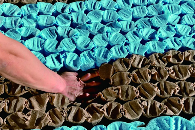 即用手试压床垫,首先试压床垫对角线压力,再均匀试压床垫表面,填充物分布均匀,反弹力平衡的床垫质量较好,最好消费者能躺上去亲身感受一下。